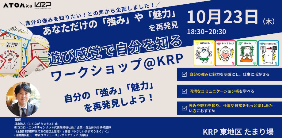 • 10/23【京都リサーチパーク】あなただけの「強み」や「魅力」を再発見~遊び感覚で自分を知るワークショップ~@KRP